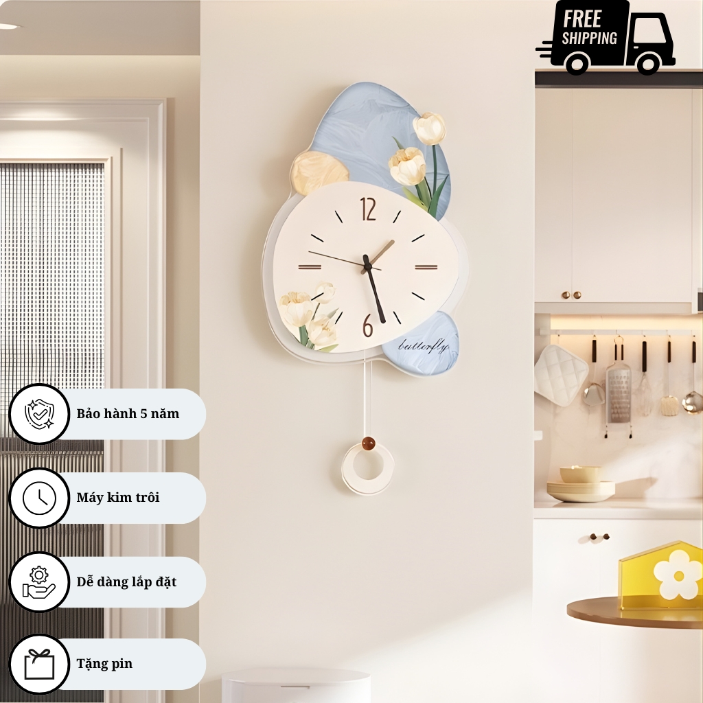 Ý nghĩa phong thủy: Đồng hồ, đặc biệt là loại có quả lắc chuyển động, tượng trưng cho sự sống, sự vận động và năng lượng tích cực. Sự lắc lư nhịp nhàng của quả lắc giúp điều hòa không khí, thu hút luồng khí tốt và tài lộc vào nhà.