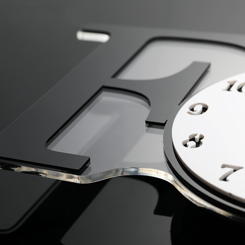 Bên cạnh việc sử dụng acrylic cao cấp của đài Loan để chế tác ra mặt đồng hồ treo tường, chúng tôi còn trang bị máy đồng hồ kim trôi và máy dao động con lắc cao cấp, được nhập khẩu từ đài loan. Giúp cho sản phẩm vận hành êm ái, không gây tiếng ồn vào ban đêm ảnh hưởng đến giấc ngủ của bạn và gia đình.