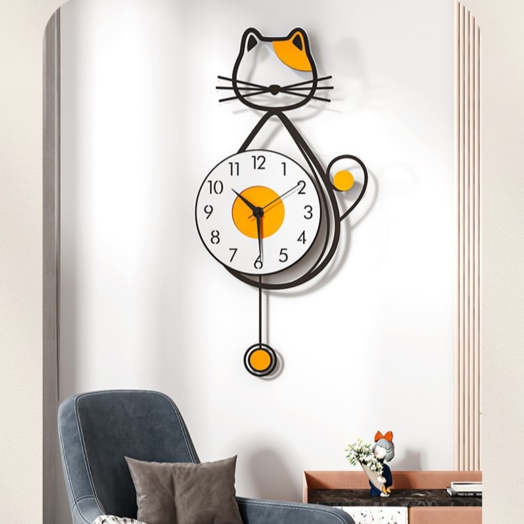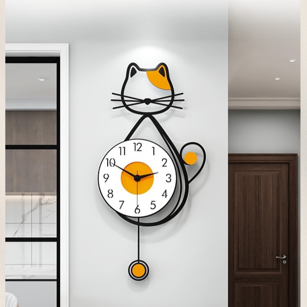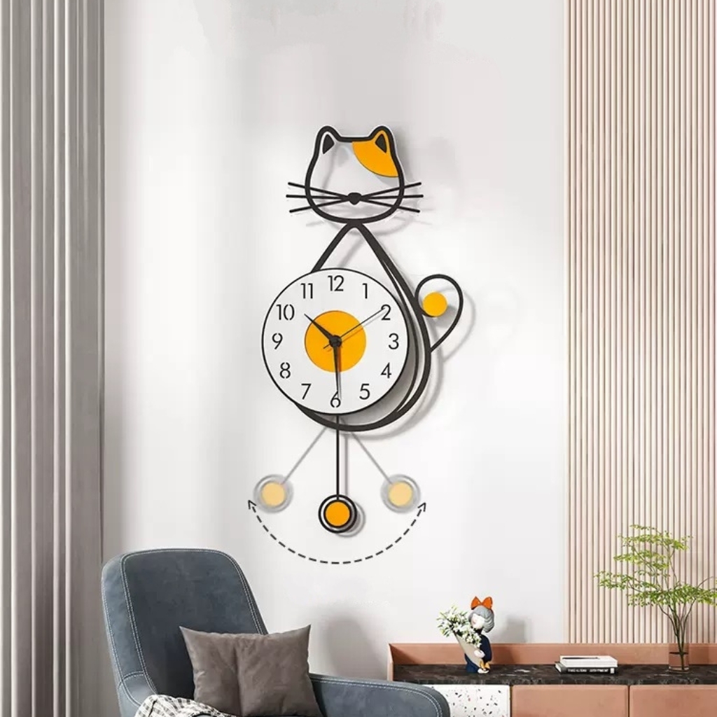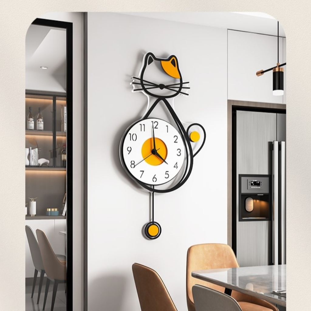 Sản phẩm đồng hồ treo tường quả lắc mèo may mắn được thiết kế với phong cách hiện đại, kết hợp yếu tố nghệ thuật tinh tế, làm nổi bật bất kỳ không gian nào. Hình tượng chú mèo đáng yêu được tích hợp với quả lắc nhẹ nhàng, mang lại sự sống động và nét sang trọng cho phòng khách, phòng ngủ hay văn phòng.