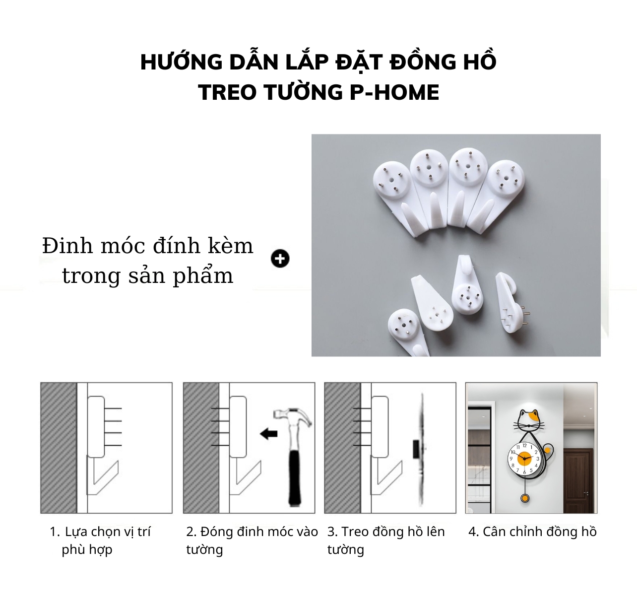 Với thiết kế độc đáo và ý nghĩa phong thủy tốt lành, mẫu đồng hồ treo tường quả lắc mèo may mắn P-HOME là sự lựa chọn hoàn hảo để vừa làm đẹp không gian sống, vừa mang lại tài lộc, may mắn. Hãy để P-HOME giúp bạn tạo nên sự khác biệt trong ngôi nhà của mình với sản phẩm độc đáo này!