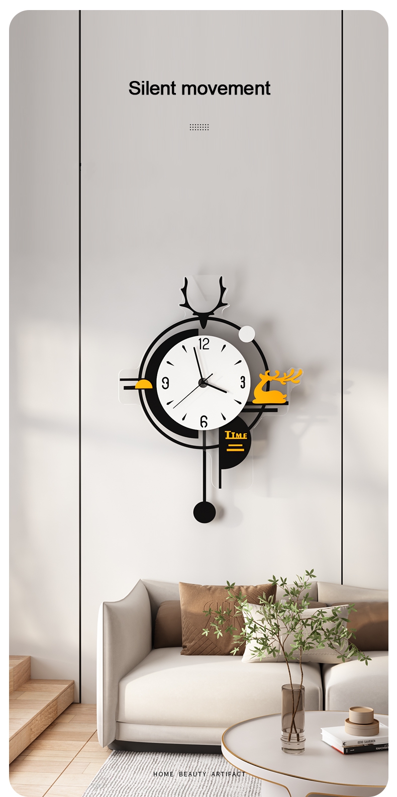 Bên cạnh việc sử dụng acrylic cao cấp của đài Loan để chế tác ra mặt đồng hồ treo tường, chúng tôi còn trang bị máy đồng hồ kim trôi và máy dao động con lắc cao cấp, được nhập khẩu từ đài loan. Giúp cho sản phẩm vận hành êm ái, không gây tiếng ồn vào ban đêm ảnh hưởng đến giấc ngủ của bạn và gia đình.