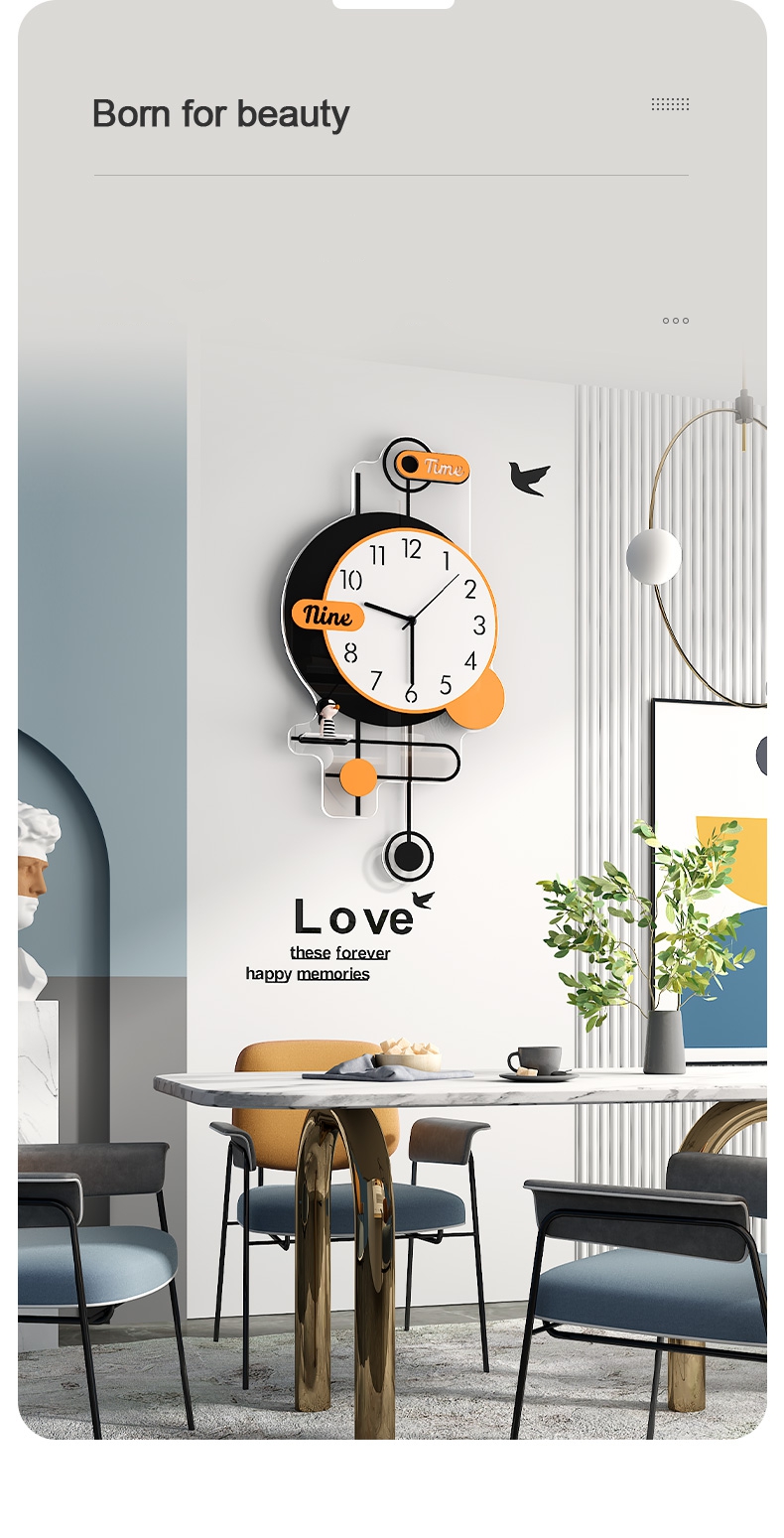 Bên cạnh việc sử dụng acrylic cao cấp của đài Loan để chế tác ra mặt đồng hồ treo tường, chúng tôi còn trang bị máy đồng hồ kim trôi và máy dao động con lắc cao cấp, được nhập khẩu từ đài loan. Giúp cho sản phẩm vận hành êm ái, không gây tiếng ồn vào ban đêm ảnh hưởng đến giấc ngủ của bạn và gia đình.