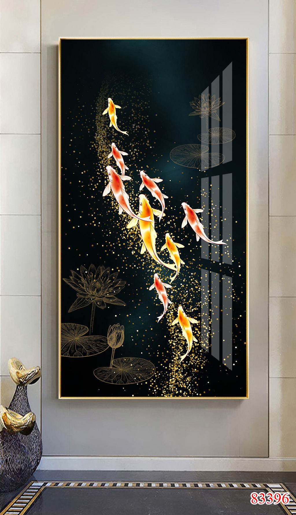 Hình ảnh đàn cá chép bơi lội trong dòng nước yên bình tượng trưng cho sự hòa thuận trong gia đình, mang lại năng lượng tích cực và không khí vui vẻ. Điều này giúp tạo cảm giác thư thái và hạnh phúc cho các thành viên trong nhà.