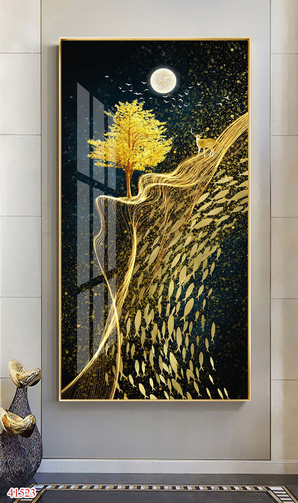 Hình ảnh đàn cá bơi lội trong dòng nước yên bình tượng trưng cho sự hòa thuận trong gia đình, mang lại năng lượng tích cực và không khí vui vẻ. Điều này giúp tạo cảm giác thư thái và hạnh phúc cho các thành viên trong nhà.